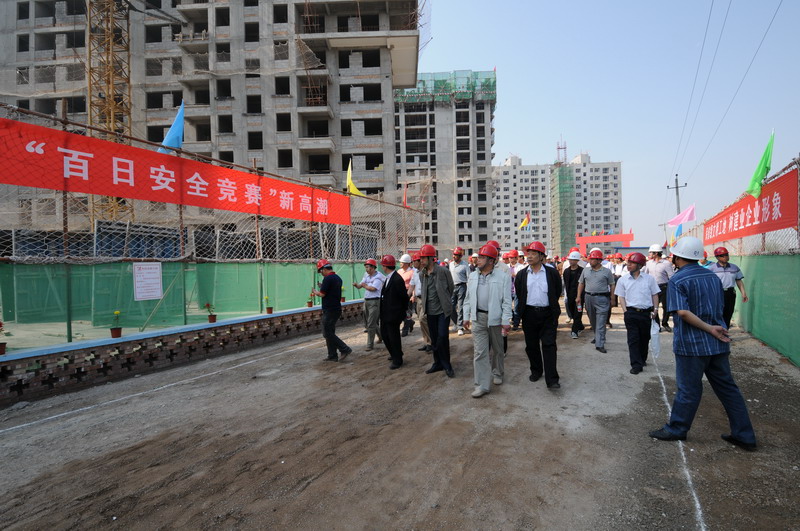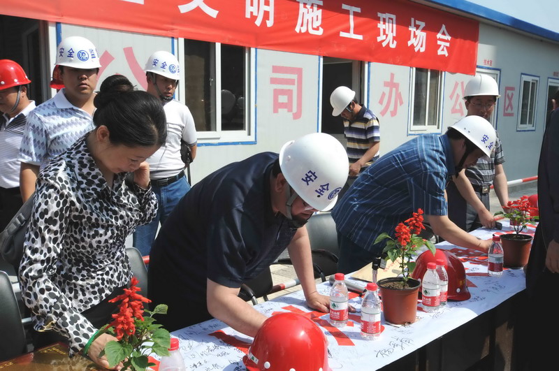 2010年6月4日,張家口住建局在我集團六公司承建的張家口親河苑小區(qū)項目部召開了建筑施工安全文明施工現場會,張家口市住建局局長李義、安監(jiān)站站長張芝祥及各區(qū)縣住建局、安監(jiān)站負責人,施工、監(jiān)理單位負責人共72個單位220余人出席了會議,并在我集團安全百日賽的宣傳條幅上了簽字。