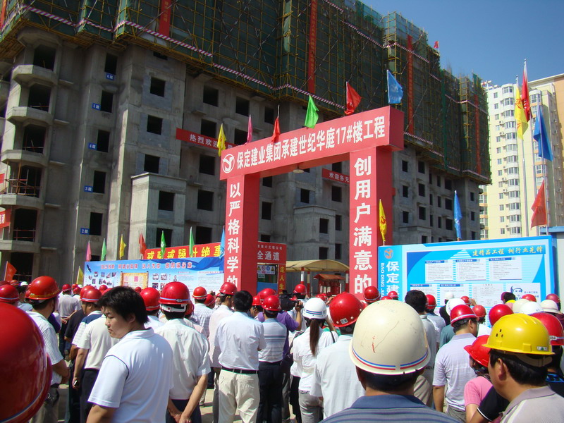 2010年7月20日,由市建設(shè)局安監(jiān)站在華北電力大學(xué)會議室組織召開了建設(shè)系統(tǒng)安全文明施工現(xiàn)場會。會議有省、市安監(jiān)站領(lǐng)導(dǎo),市、縣、區(qū)建設(shè)局、安監(jiān)站主要領(lǐng)導(dǎo),全市及駐保主要建筑施工企業(yè)負(fù)責(zé)人參加。集團(tuán)六公司世紀(jì)華庭17號樓項目部被選為與會人員參觀的樣板項目部。