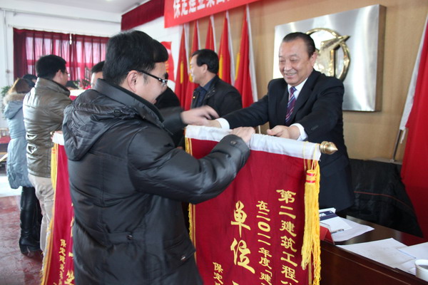 在隨后舉行的二零一一年度集團表彰大會上,由黨委副書記閆雙彥宣讀了“二零一一年度建功立業表彰決定”,并由集團公司領導對獲獎單位頒發了錦旗和獎狀。